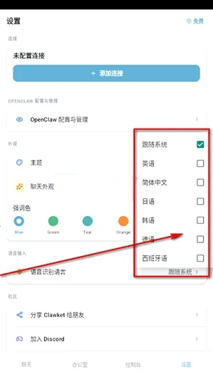 3、在这里切换简体中文或者是跟随系统;