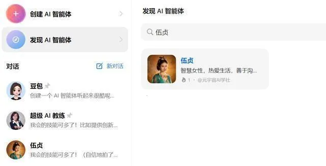 看看,有意思吧?!想和我聊聊吗?打开豆包,点击“发现智能体”,搜索“伍贞”,撩吧