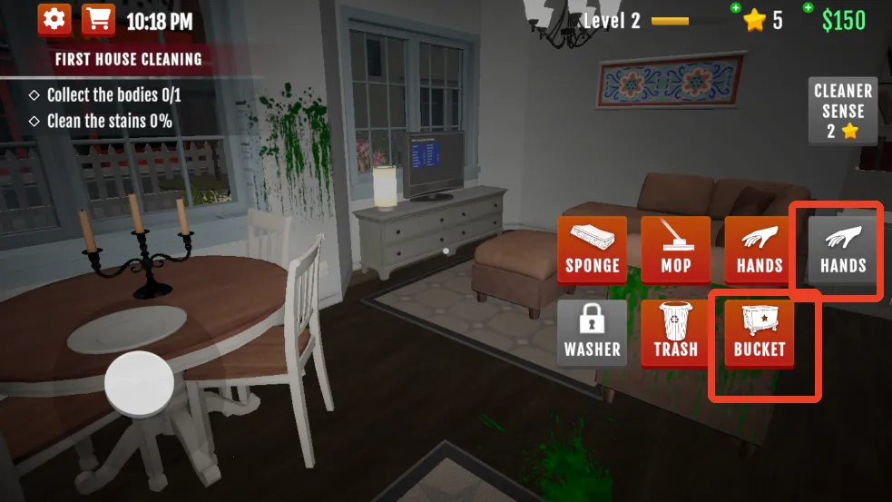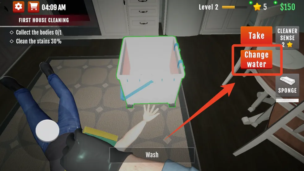 7、使用拖把时左边会有一个拖把的耐久度进度条,当进度条满的时候需要及时洗拖把,不然血迹会越拖越多。