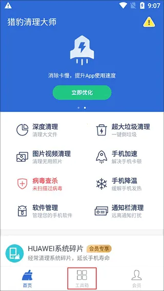 金山清理大师(原猎豹清理大师)是手机性能优化与隐私保护工具。能深度清理、智能加速,解决卡顿等问题。有回收站可还原误删媒体文件,三步实现网络测速。还有微信QQ等清理及多种特色功能,不断修复问题。