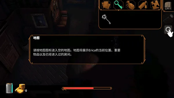 1、进入直到晨曦来临游戏后,主角被关进了鬼屋,需要找到钥匙通关房间才可以逃离这个地方。