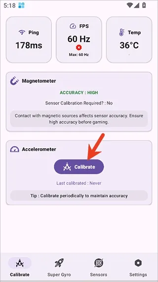 1. 专业校准:提供专业的陀螺仪传感器精密校准功能,解决设备漂移问题,确保游戏操作精准。