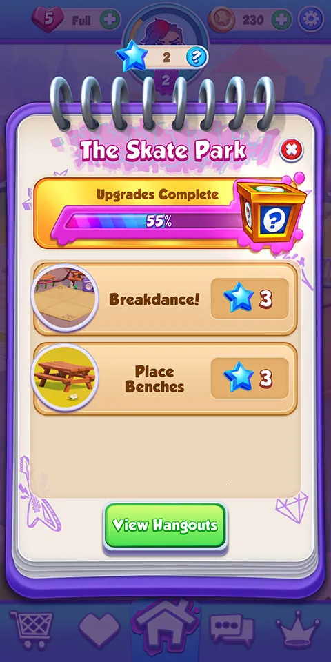 2. 探索与装饰:可加入团队旅程,建造并装饰滑板天堂,解锁独特物品装饰聚会场所。