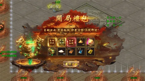 1、进入天神大战九游版游戏后,领取开局礼包