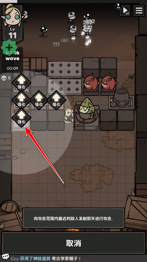 2.死掉的怪物会掉落经验值,经验值攒够之后又可以选择增加炮塔或者提升增益。