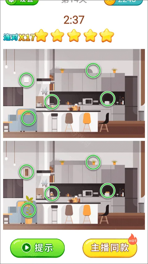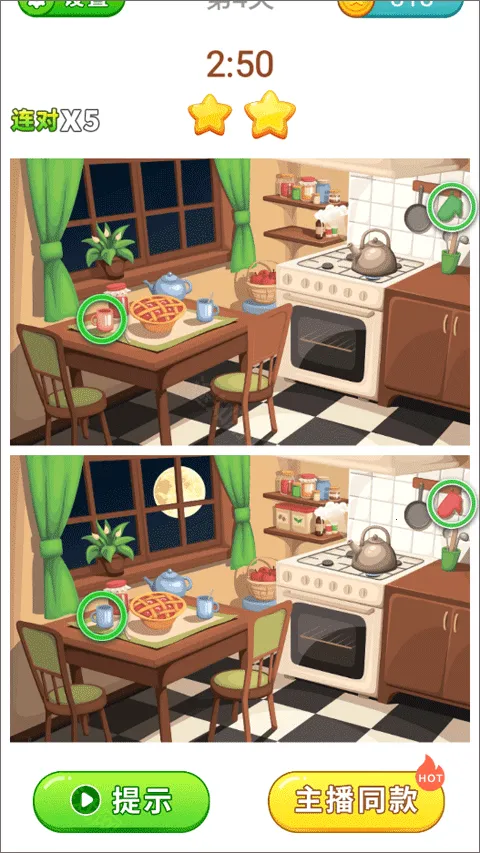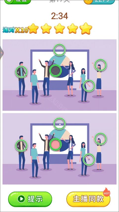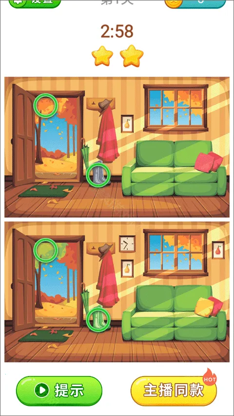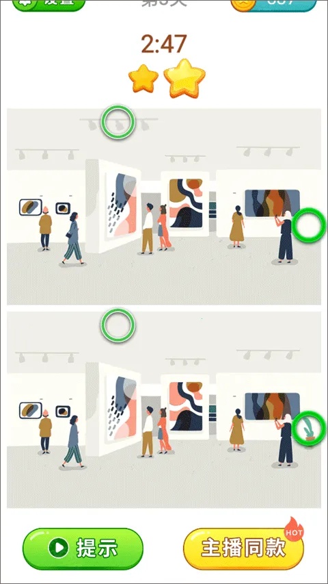 3. 贴心设有提示功能。当玩家在游戏中遇到找不到不同点的困扰时,可以借助提示来顺利找出差异,让游戏过程更加顺畅,不会因难题而受阻。
